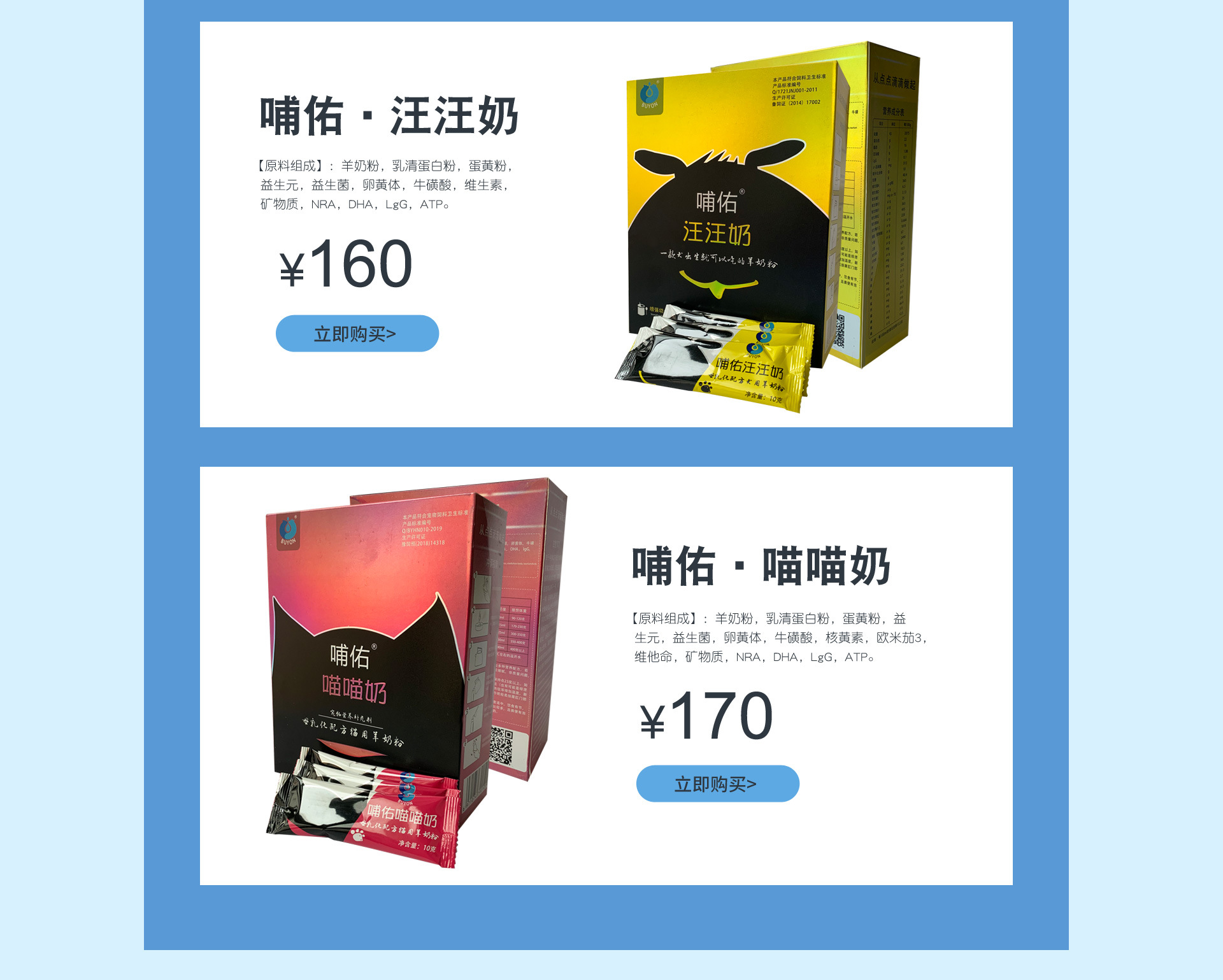 河南哺佑寵物食品有限公司,是生產(chǎn)銷售寵物食品的專業(yè)化公司。公司前身是商丘德力銀寵物食品有限公司。2012年在河南商丘成立,生產(chǎn)地址坐落于美麗的壩清河畔,現(xiàn)有員工總計(jì)60人。公司注冊商標(biāo)是哺佑。公司現(xiàn)在有四大類共60多個(gè)產(chǎn)品。 一,寵物狗類:寵物羊奶粉,幼犬羊奶粉,泰迪專用羊奶粉,孕期奶粉,老年犬營養(yǎng)粉,蛋白粉,美毛粉,奶片,鈣片,鈣粉 ,奇力素,腸安,海藻粉,豐滿多等。 寵物貓類:貓咪奶粉,奶片,鈣片,鈣粉,海藻粉 二,鳥類營養(yǎng)品:鸚鵡奶粉,高脂鸚鵡奶粉,鸚鵡高鈣奶粉,艷毛粉。 三,兔子,倉鼠奶粉。兔兔奶 四,特養(yǎng)動(dòng)物奶粉:狐貉貂奶粉,高蛋白粉 五,反芻動(dòng)物奶粉:羔羊奶粉,梅花鹿奶粉,羊初乳 六,其他奶粉,家禽開口寶,強(qiáng)化劑. 為滿足寵物寶寶在離乳期(奶糕期)對奶粉的持續(xù)需求,并根據(jù)寵物寶寶的生理及心理,吸收與營養(yǎng)要求,本公司又推出新產(chǎn)品哺佑羊奶糧。以羊奶粉為主要原料