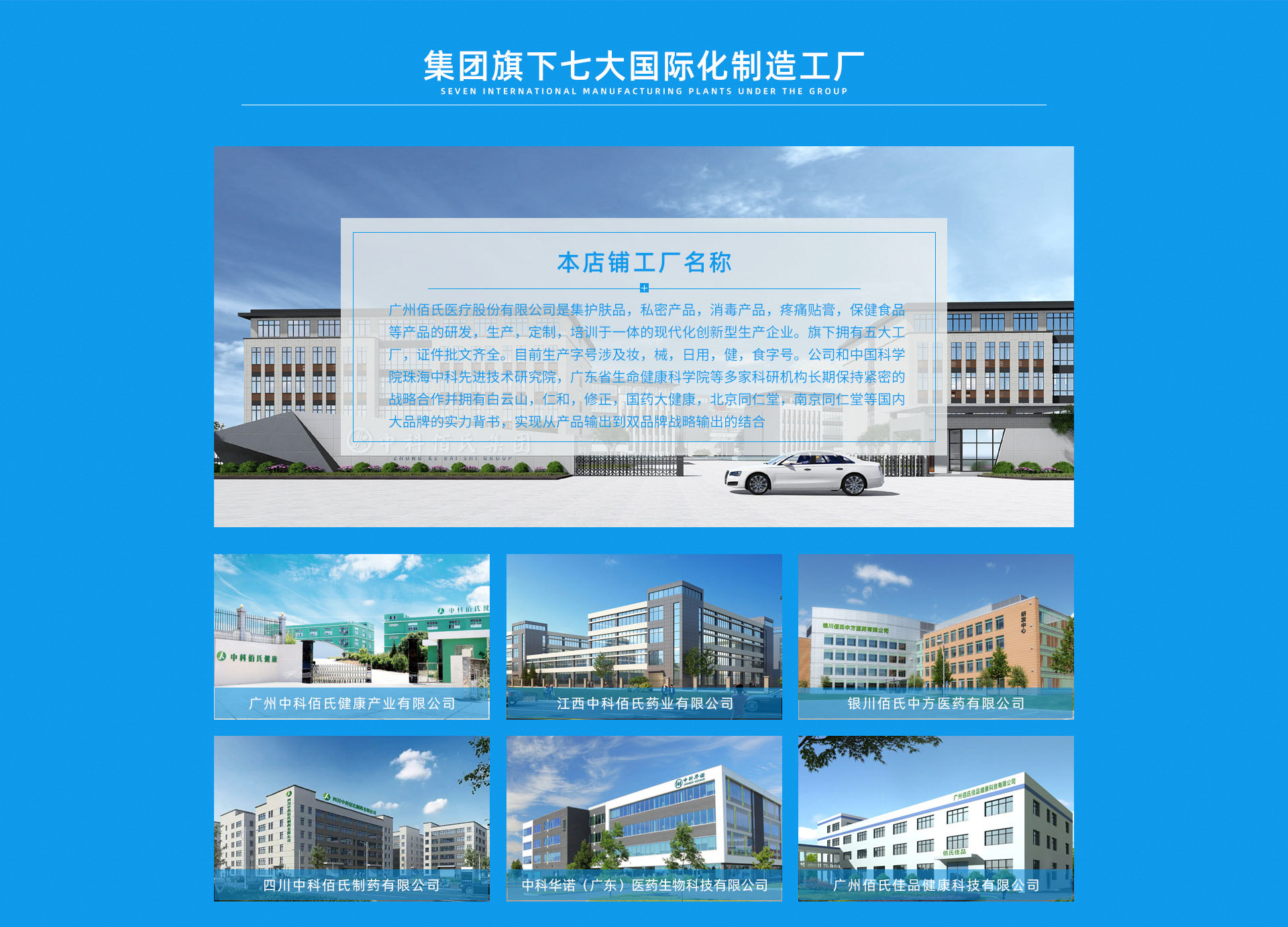 中國(guó)廣州佰氏醫(yī)療股份有限公司總部位于廣州,創(chuàng)建于2009年, 生產(chǎn)及研發(fā)涵蓋大健康和化妝品領(lǐng)域的全品類產(chǎn)品,以珠海中科先進(jìn)院和強(qiáng)大資源以及研發(fā)科研能力和優(yōu)勢(shì),打造大健康產(chǎn)業(yè)OEM/ODM新標(biāo)桿。 集團(tuán)在廣州、佛山、鄭州、成都、山西、寧夏擁有六大生產(chǎn)基地,十萬級(jí)的制藥標(biāo)準(zhǔn)無菌凈化車間,有德國(guó)、美國(guó)、意大利等先進(jìn)的自動(dòng)生產(chǎn)設(shè)備及儀器,實(shí)現(xiàn)整個(gè)生產(chǎn)流程的自動(dòng)化、精準(zhǔn)化、智能化。 主營(yíng)產(chǎn)品覆蓋全品類:潔面、水乳霜、精華、眼霜、彩妝等化妝品;冷敷貼、液體輔料、冷敷凝膠等一類、二類醫(yī)療器械;婦科凝膠、女性私密、延時(shí)噴劑、各種膠囊、各種疼痛貼、各種養(yǎng)生食品等等大健康產(chǎn)品。 工廠已通過GMPC和ISO雙重國(guó)際認(rèn)證,以及CE、FDA、MSDS等進(jìn)出口資質(zhì)認(rèn)證,為眾品牌提供高效、獨(dú)特、尖端的國(guó)際化環(huán)保系列產(chǎn)品和多元化、高品質(zhì)、新功效產(chǎn)品,打造健康生態(tài)一站式全案服務(wù)平臺(tái)。 佰氏健康集團(tuán)以“雙品牌戰(zhàn)略、借船出?!鄙虡I(yè)模式為指引,全維度SWOT分析串聯(lián)大品牌賦能及背書,結(jié)合精準(zhǔn)的品牌全案策劃,從品牌、團(tuán)隊(duì)、營(yíng)銷引爆勢(shì)能,從0到1到100,幫客戶達(dá)成億級(jí)企業(yè)夢(mèng)想。