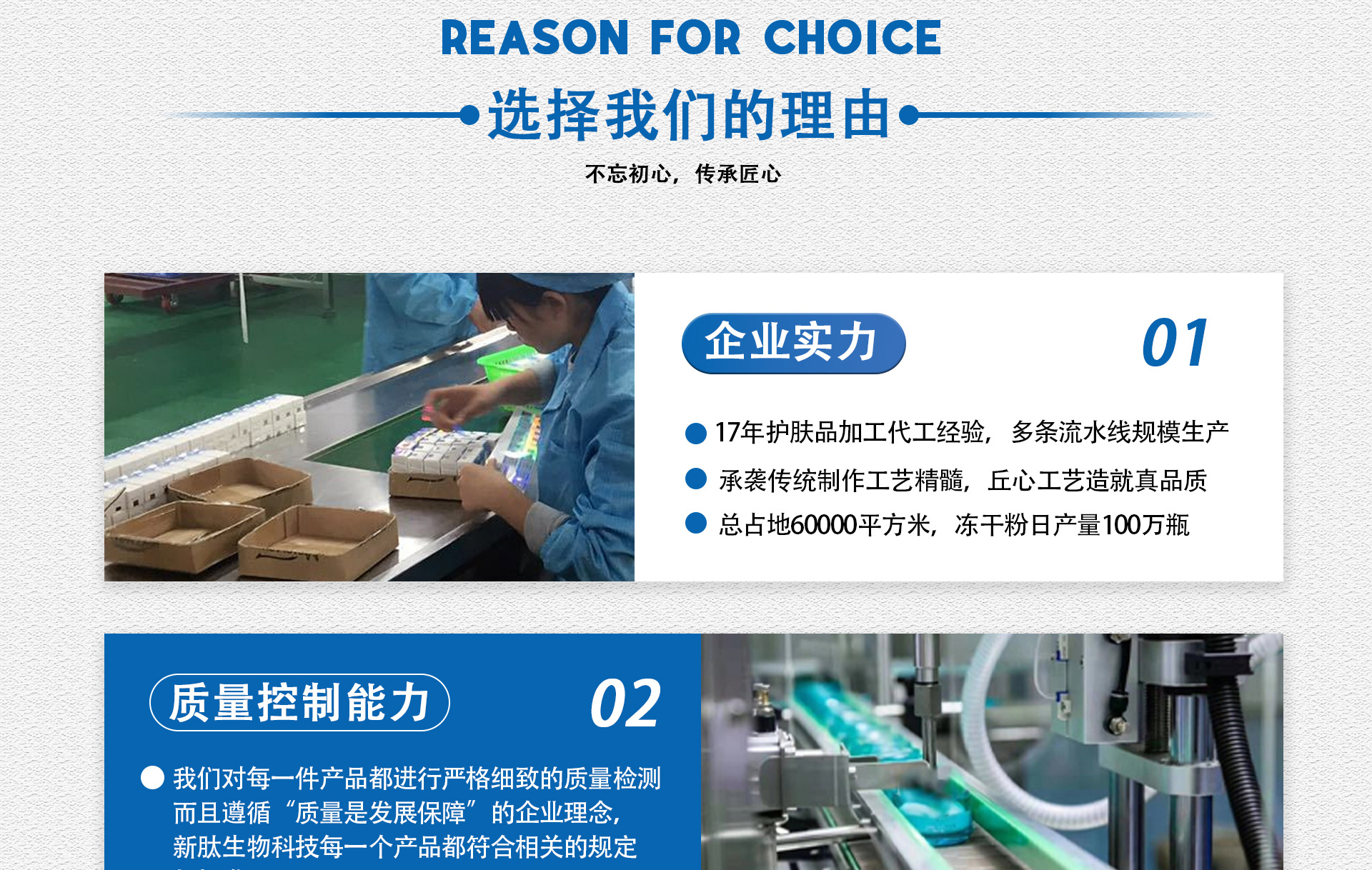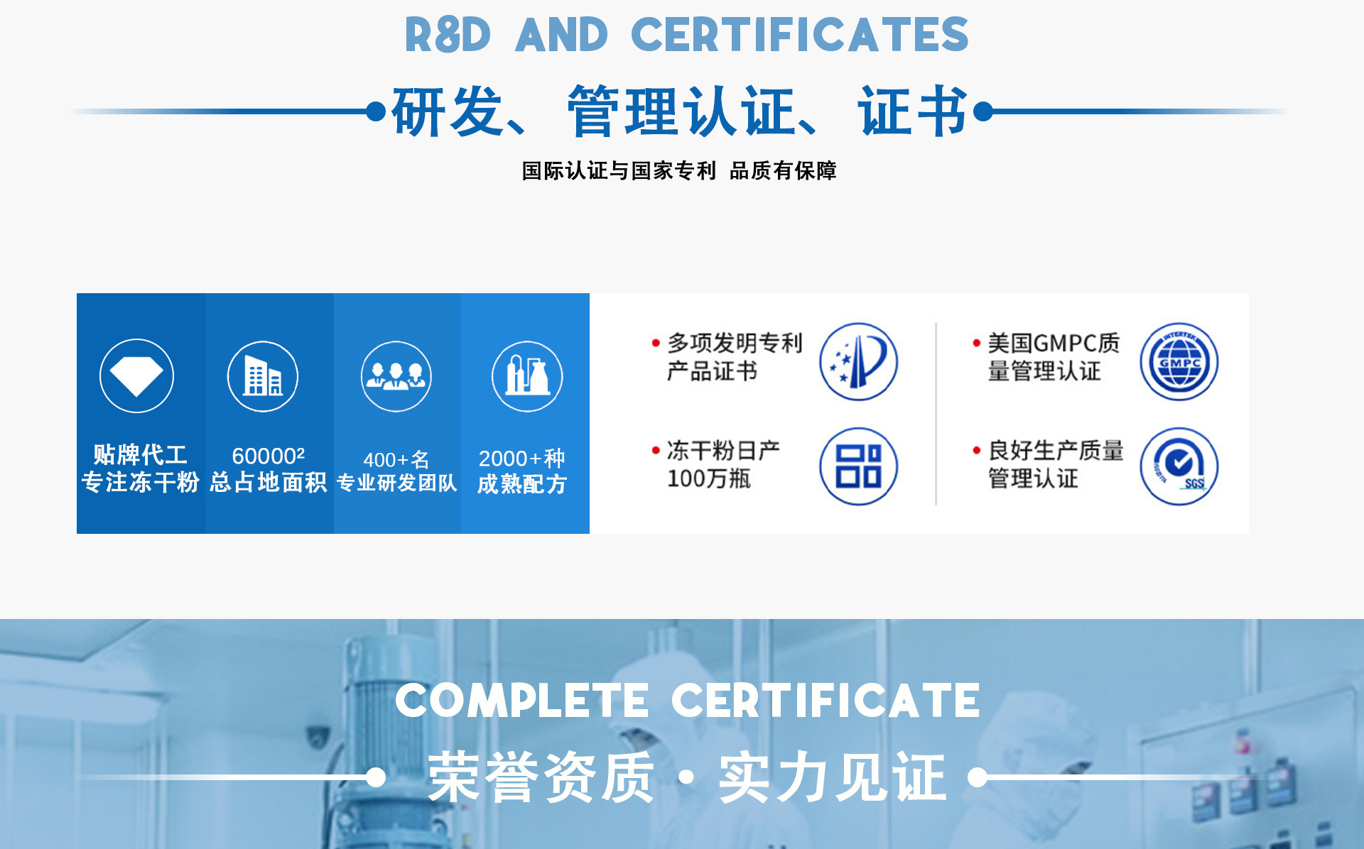 廣州愫妍生物科技有限公司是一家加工生產(chǎn)醫(yī)美院線功效性產(chǎn)品為主的現(xiàn)代化企業(yè),工廠面積12000平方米,生產(chǎn)車間為10萬級無菌標(biāo)準(zhǔn),車間使用過濾凈化系統(tǒng),自有研發(fā)團隊,已通過ISO9001質(zhì)量管理體系認(rèn)證,整個生產(chǎn)車間無縫隙、全密封,車間使用過濾凈化系統(tǒng),歡迎廣大客戶看廠詳談