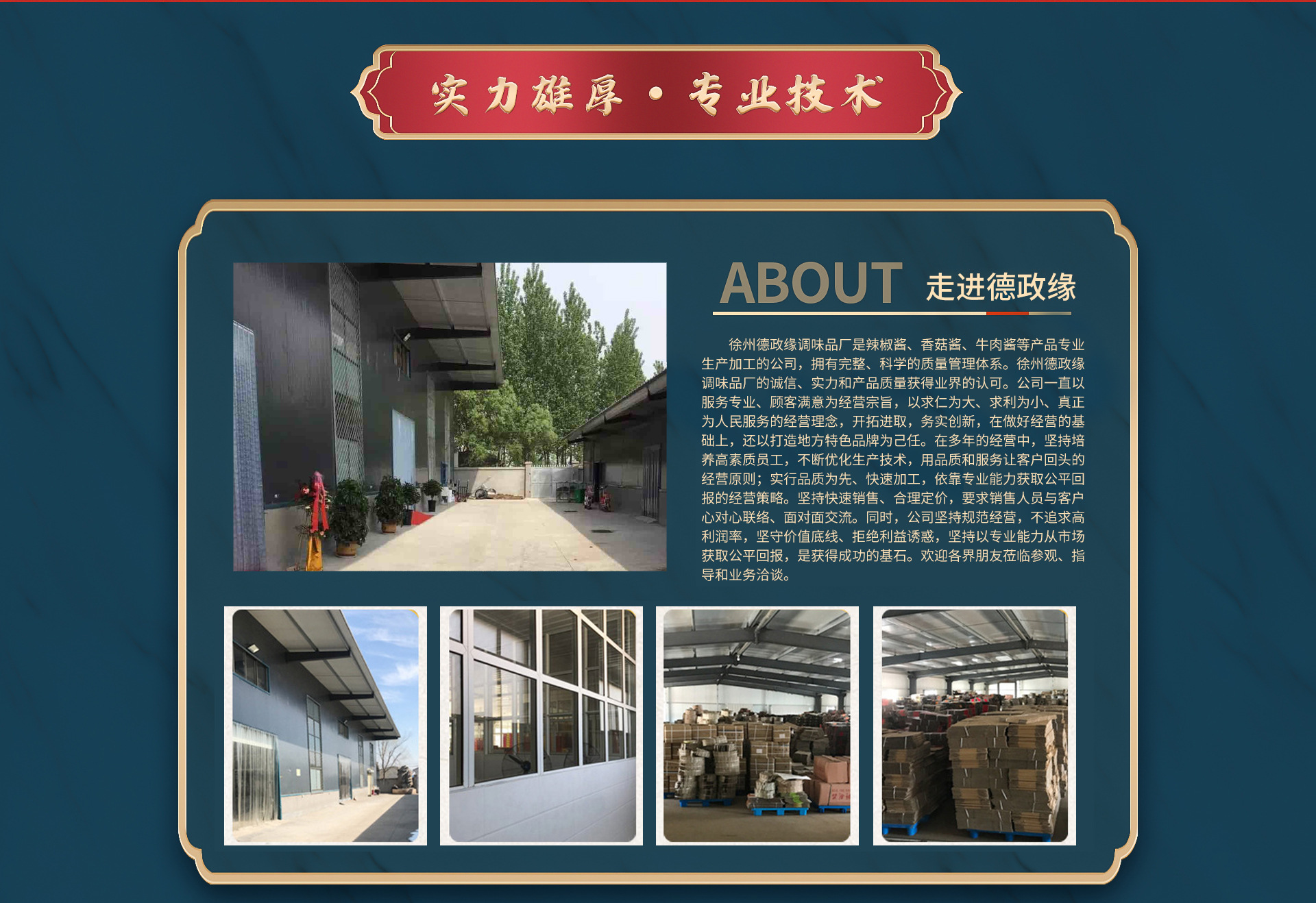 徐州德政緣調(diào)味品廠(chǎng)是辣椒醬、辣醬等產(chǎn)品專(zhuān)業(yè)生產(chǎn)加工的公司,擁有完整、科學(xué)的質(zhì)量管理體系。徐州德政緣調(diào)味品廠(chǎng)的誠(chéng)信、實(shí)力和產(chǎn)品質(zhì)量獲得業(yè)界的認(rèn)可。歡迎各界朋友蒞臨參觀(guān)、指導(dǎo)和業(yè)務(wù)洽談。
