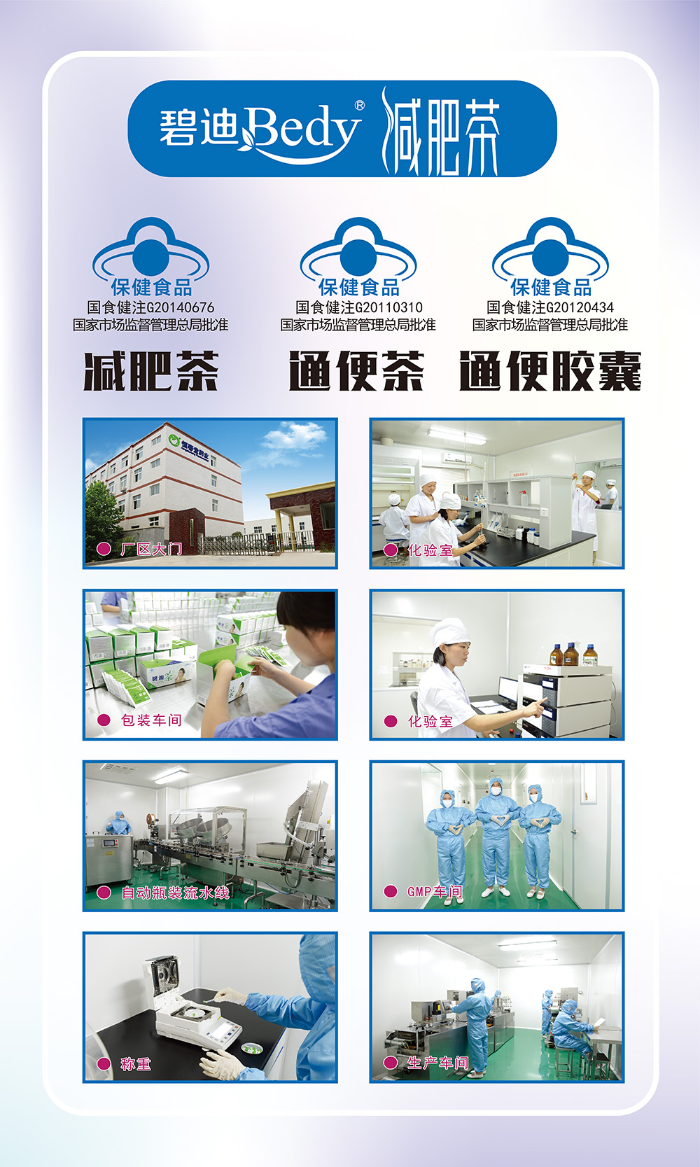 公司現(xiàn)擁有國食健字系列產(chǎn)品:碧迪牌秀爾茶(原減肥茶)、碧迪牌碧迪茶(原通便茶)、碧迪牌碧迪膠囊(原通便膠囊)、碧迪牌蘆薈決明子西洋參膠囊、碧迪牌碧迪咀嚼片、碧迪牌維生素C咀嚼片、蓋萊健牌葉酸鈣咀嚼片(孕婦)、蓋萊健牌鐵鋅鈣咀嚼片,近期還將獲得羅布麻銀杏茶、沙棘葛根茶、靈芝百合茶、恒春堂牌抗氧化軟膠囊、恒春堂牌褪黑素軟膠囊、恒春堂牌增加骨密度膠囊、恒春堂牌蛋白質(zhì)粉、恒春堂牌西洋參含片、左旋肉堿決明子荷葉膠囊、碧迪牌維生素E軟膠囊等產(chǎn)品。
