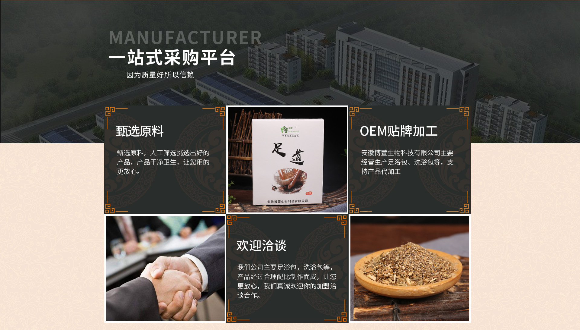 安徽博萱生物科技有限公司坐落在、華佗故里、中華藥都的安徽亳州。公司下屬分公司有亳州市廣義農(nóng)副產(chǎn)品購銷有限公司、亳州市譙城區(qū)佳農(nóng)中藥材種植合作社,本公司本著自供自給全產(chǎn)業(yè)鏈模式、為您提供更為穩(wěn)定、質(zhì)量可控的優(yōu)質(zhì)合格產(chǎn)品。 本公司生產(chǎn)范圍:抗(抑)菌制劑(固體、液體、凈化)及艾制品的生產(chǎn)銷售,所涉及的產(chǎn)品有、足浴包、藥浴包、藏紅花泡浴抑菌液、艾灸液、足浴顆粒、足浴原料包、抑菌噴劑。