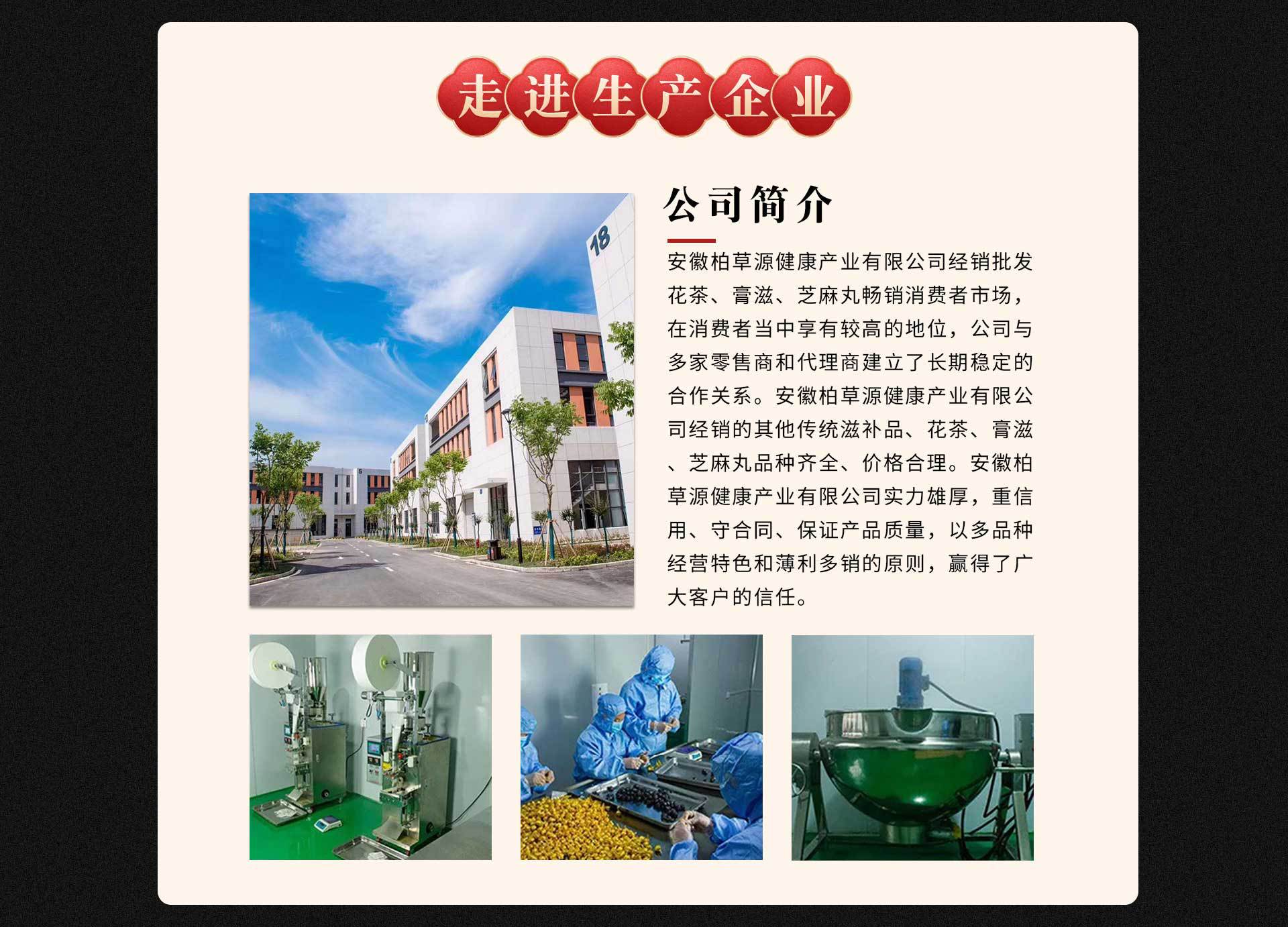 安徽柏草源健康產(chǎn)業(yè)有限公司是芝麻丸、膏滋、袋泡茶等產(chǎn)品專業(yè)生產(chǎn)加工的公司,擁有完整、科學(xué)的質(zhì)量管理體系。安徽柏草源健康產(chǎn)業(yè)有限公司的誠(chéng)信、實(shí)力和產(chǎn)品質(zhì)量獲得業(yè)界的認(rèn)可。歡迎各界朋友蒞臨參觀、指導(dǎo)和業(yè)務(wù)洽談。