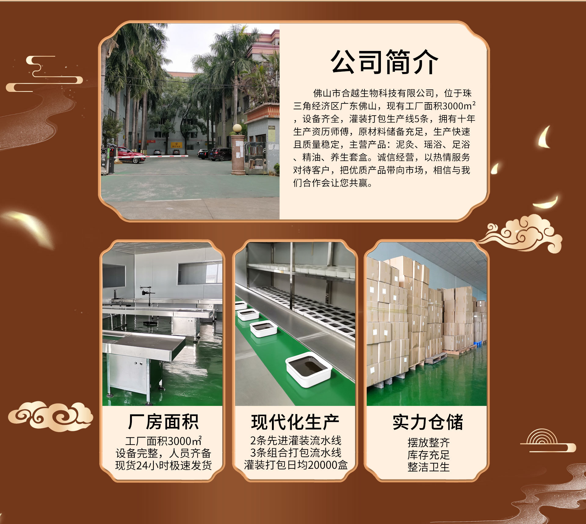 佛山市合越生物科技有限公司,位于廣東省佛山市,集美容養(yǎng)生產(chǎn)品的加工定制、經(jīng)銷批發(fā)為一體,生產(chǎn)中草本泥膏、瑤浴泡澡包、足浴泡腳粉、按摩開(kāi)背精油及美容養(yǎng)生套盒等產(chǎn)品。本公司擁有完整、科學(xué)的研發(fā)體系,現(xiàn)代化自動(dòng)生產(chǎn)流水線,為客戶提供研發(fā)服務(wù)及產(chǎn)能保障。產(chǎn)品直供美容院、養(yǎng)生館、桑拿洗浴館、酒店和外貿(mào)公司等各類養(yǎng)生美容銷售場(chǎng)所,與各大零售代理建立穩(wěn)定的合作關(guān)系。歡迎各界朋友蒞臨參觀、指導(dǎo)和業(yè)務(wù)洽談。