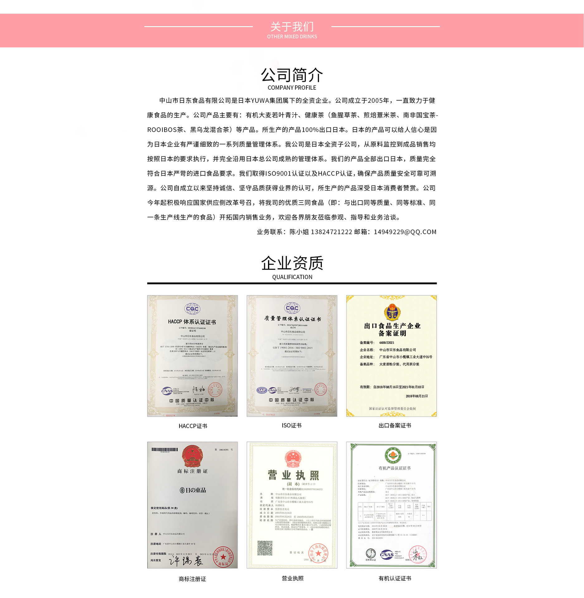 中山市日東食品有限公司是一家2005年成立的日本全資企業(yè),專業(yè)生產(chǎn)各類青汁固體飲料以及日式袋泡茶包。十多年來,產(chǎn)品一直全部出口日本。 公司有完備的日本進(jìn)口自動(dòng)生產(chǎn)設(shè)備線,精準(zhǔn)的質(zhì)量監(jiān)測設(shè)備,實(shí)施嚴(yán)謹(jǐn)規(guī)范的管理。 可為廣大消費(fèi)者提供高質(zhì)量的自有品牌大麥若葉青汁產(chǎn)品,也可承接代工生產(chǎn)各類粉末固體飲料以及袋泡茶包業(yè)務(wù)。