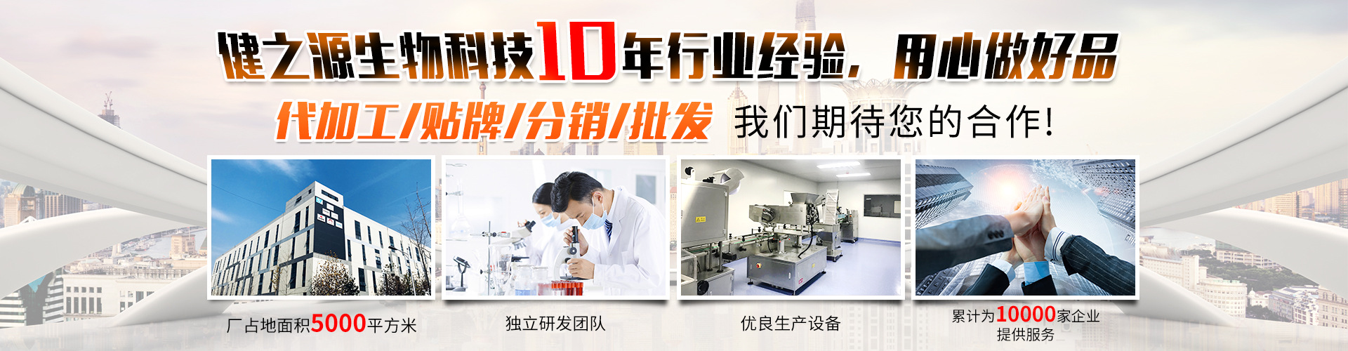 濟(jì)南健之源_專(zhuān)注壓片糖果(片劑)、固體飲料(粉劑、顆粒)、凝膠糖果(軟糖、軟膠囊)、袋泡茶(代用茶)、方便食品的OEM與ODM貼牌代加工,公司擁有成熟產(chǎn)品木瓜葛根片、酵素魔芋片、黃精牡蠣肽片、綜合果蔬酵素粉、黑糖姜茶、蛋白質(zhì)粉、益生菌粉、代餐粉、維生素軟糖、魚(yú)油軟膠囊等配方支持貼牌代加工并能定制修改配方允許ODM全包,如有需要現(xiàn)貨批發(fā)、零售采購(gòu)請(qǐng)及時(shí)與我們聯(lián)系。 公司研發(fā)團(tuán)隊(duì)長(zhǎng)期從事科研項(xiàng)目并擁有十余項(xiàng)科研成果,在濟(jì)南生命科學(xué)城興建3000平米集研發(fā)、生產(chǎn)、質(zhì)檢、辦公于一體的廠區(qū),其中含2000平米GMP凈化認(rèn)證車(chē)間紫外線(xiàn)臭氧雙重消毒,每立方米菌落總數(shù)控制在10萬(wàn)以下,等同于制藥企業(yè)標(biāo)準(zhǔn)。自動(dòng)化生產(chǎn)線(xiàn)有效提高生產(chǎn)效率,片劑日生產(chǎn)量可達(dá)800萬(wàn)片,凝膠糖果軟膠囊日生產(chǎn)量可達(dá)500萬(wàn)粒。只要說(shuō)出關(guān)于您想要的產(chǎn)品任何信息,我們定會(huì)給你滿(mǎn)意的產(chǎn)品。
