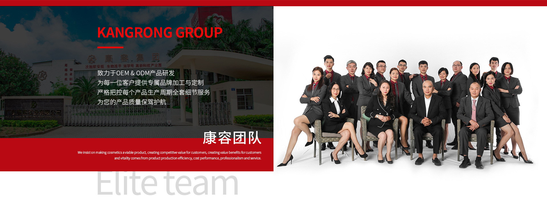 廣東康容集團公司依托廣州康蓉科技有限公司的厚重積淀,由領軍企業(yè)廣東康容實業(yè)有限公司發(fā)起成立的大型化妝品集團公司。公司位于廣州市白云區(qū)神山工業(yè)園鎮(zhèn)中北路。整個生產園區(qū)占地3萬多平方米,由辦公樓、廠房一、廠房二、成品大樓、宿舍樓、連廊等組成“梁派”建筑群,前有中心花園廣場,后有敞篷飄香大廳。廠區(qū)容積率低,綠化率高,名木相間,綠樹成蔭。假山、人造瀑布、國際標準網球場、石桌石凳石碑串聯(lián)點綴,構成了“廠在園中,園在廠中”的花園式生產園區(qū)。 一、經營內容 公司產業(yè)涵蓋了化妝品、次拋軟安瓶、生物凍干、消字號等高新科技產業(yè)園以及化妝品機械等范圍,形成了從產業(yè)布局、產品研發(fā)、生產銷售到產業(yè)服務的“多領域”、“ 一條龍”的業(yè)態(tài)鏈條。生產經營范圍以OEM\ODM為主,自有品牌為輔,即“賣生產”與“賣產品”相結合,實行“2+N”發(fā)展模式。