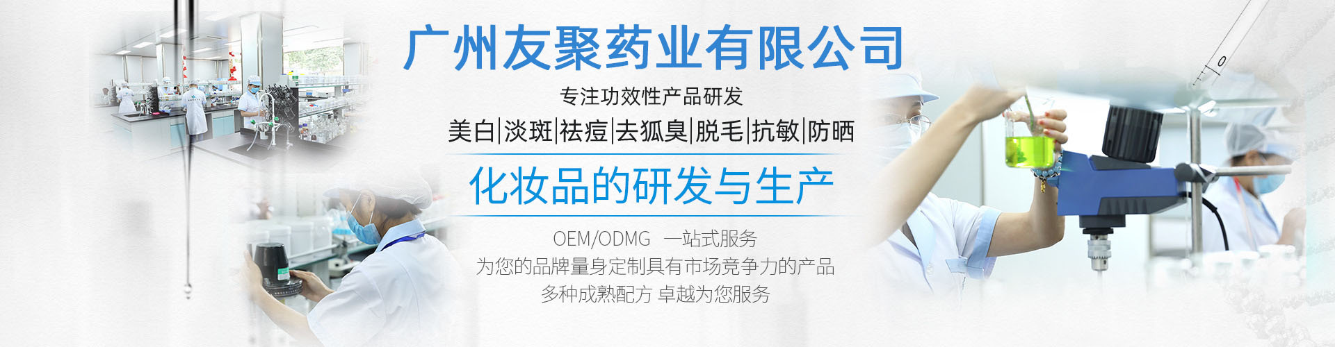 友聚藥業(yè)是一家從事化妝品技術創(chuàng)新,專注美白祛斑、祛痘、去狐臭、脫毛、豐胸、防脫發(fā)等功效型產品技術開發(fā),OEM/ODM生產和研發(fā)一體化的創(chuàng)新型企業(yè),多年匠心、精致之作,坐落于廣州美麗的白云區(qū),以科研為先驅,創(chuàng)新為先導,品質為生命力的技術企業(yè),在化妝品行業(yè)以創(chuàng)新技術實力具較強影響力。歡迎各界朋友蒞臨參觀、指導和業(yè)務洽談。