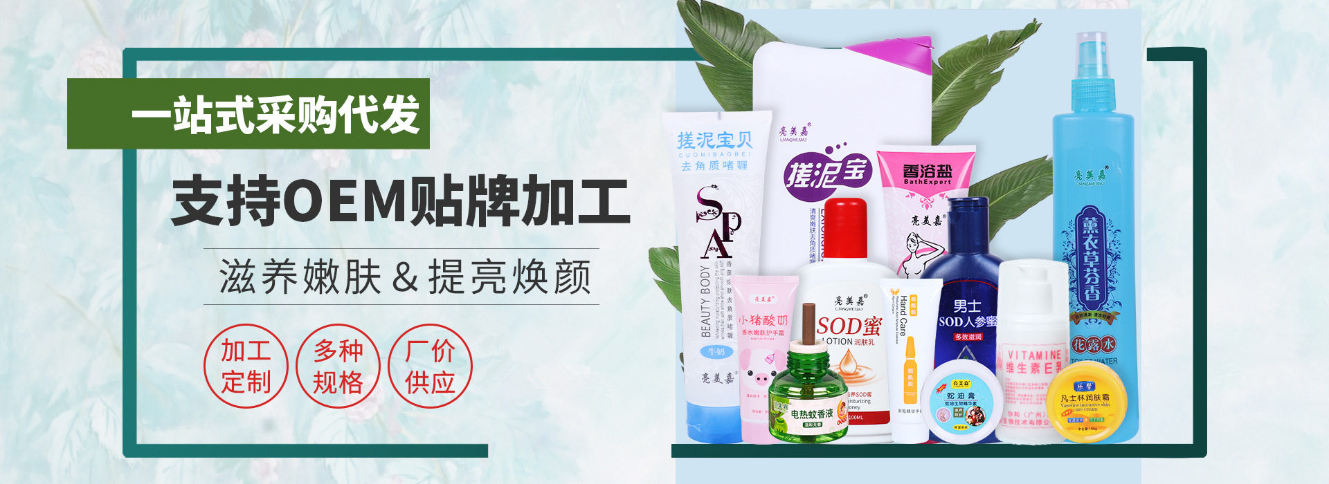 臨沂市蘭山區(qū)千燁化妝品廠 主要生產(chǎn)銷售亮美嘉系列搓泥寶 香浴鹽 花露水 驅(qū)蚊乳 護手霜 裂可寧 凡士林 蛇油膏 SOD蜜 維生素E乳 泡沫洗手液 洗手液 電蚊香液 所有產(chǎn)品承接貼牌加工。