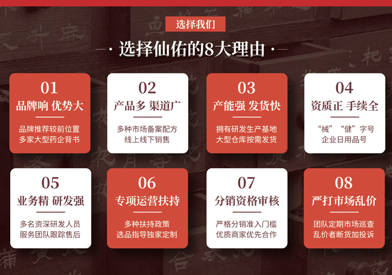 針對目前市場上同類產(chǎn)品較多,競爭也比較激烈的現(xiàn)狀,仙佑集團(tuán)側(cè)重產(chǎn)品的功能、特點(diǎn),產(chǎn)品好用使我們對客戶的承諾。公司是專業(yè)貼膏生產(chǎn)商、銷售商,貼膏新劑型的創(chuàng)新人、貼膏產(chǎn)品細(xì)化市場的探索者。隨著市場的不斷擴(kuò)展,專業(yè)性的快速提高,已在消費(fèi)者心中數(shù)據(jù)起根深蒂固的品牌形象。