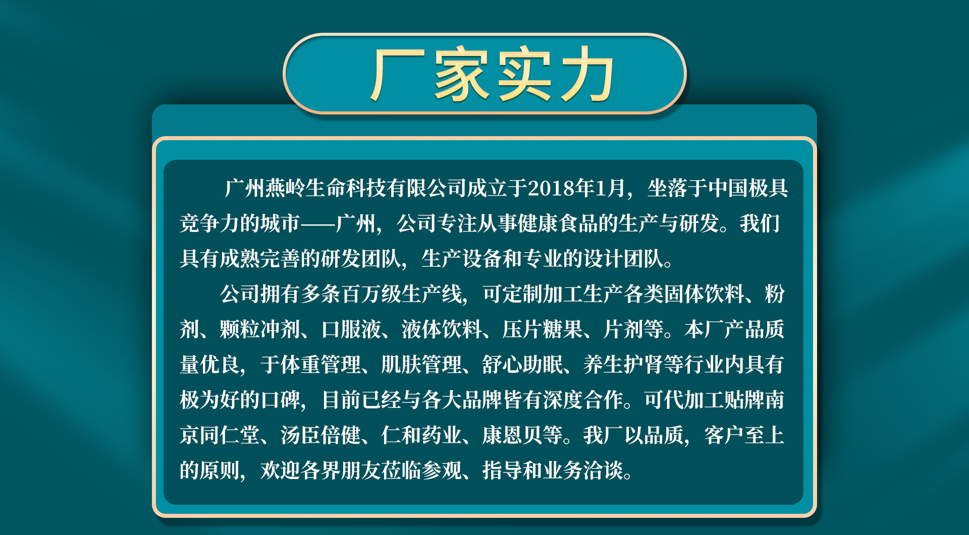 廣州燕嶺生命科技有限公司,2018年01月11日成立,經(jīng)營范圍包括生物質(zhì)能源的技術(shù)研究、開發(fā);生物產(chǎn)品的研發(fā)(不含許可經(jīng)營項(xiàng)目);生物醫(yī)療技術(shù)研究;生物技術(shù)推廣服務(wù);生物技術(shù)開發(fā)服務(wù);生物技術(shù)咨詢、交流服務(wù);生物技術(shù)轉(zhuǎn)讓服務(wù);生物防治技術(shù)推廣服務(wù);生物防治技術(shù)咨詢、交流服務(wù);百貨零售(食品零售除外);茶葉作物及飲料作物批發(fā);互聯(lián)網(wǎng)商品銷售(許可審批類商品除外);商品零售貿(mào)易(許可審批類商品除外);互聯(lián)網(wǎng)商品零售(許可審批類商品除外);貨物進(jìn)出口(專營專控商品除外);商品批發(fā)貿(mào)易(許可審批類商品除外);嬰兒用品零售;生物防治技術(shù)轉(zhuǎn)讓服務(wù);水果批發(fā);生物質(zhì)熱裂解技術(shù)的研究、開發(fā)、技術(shù)服務(wù);嬰兒用品批發(fā);生物防治技術(shù)開發(fā)服務(wù);保健食品批發(fā)(具體經(jīng)營項(xiàng)目以《食品經(jīng)營許可證》為準(zhǔn));保健食品零售(具體經(jīng)營項(xiàng)目以《食品經(jīng)營許可證》為準(zhǔn));預(yù)包裝食品批發(fā);預(yù)包裝食品零售;散裝食品批發(fā);散裝食品零售;