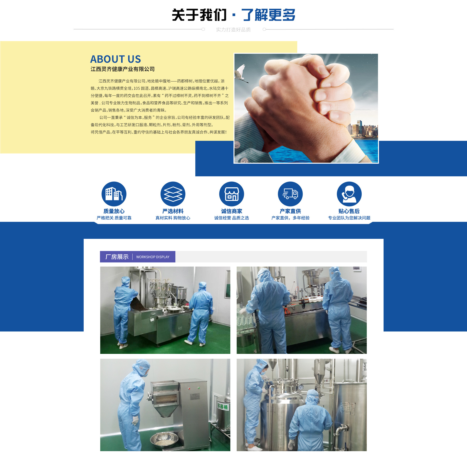 江西靈齊健康產(chǎn)業(yè)有限公司,地處贛中腹地——藥都樟樹(shù),地理位置優(yōu)越, 浙贛、大京九鐵路橫貫全境,105國(guó)道、昌樟高速、滬瑞高速公路縱橫南北,水陸交通十分便捷,每年一度的藥交會(huì)在此召開(kāi),素有“藥不過(guò)樟樹(shù)不靈,藥不到樟樹(shù)不齊”之美譽(yù). 公司專業(yè)致力生物制品,食品和營(yíng)養(yǎng)食品等研究、生產(chǎn)和銷售,推出一等系列會(huì)銷產(chǎn)品,銷售各地,深受廣大消費(fèi)者的青睞。 公司一直秉承“誠(chéng)信為本,服務(wù)”的企業(yè)宗旨,公司有經(jīng)驗(yàn)豐富的研發(fā)團(tuán)隊(duì),配備現(xiàn)代化科技,與工藝研發(fā)口服液、顆粒劑、片劑、粉劑、膏劑、外用等劑型。 將憑借產(chǎn)品,在平等互利、重約守信的基礎(chǔ)上與社會(huì)各界朋友真誠(chéng)合作、共謀發(fā)展!