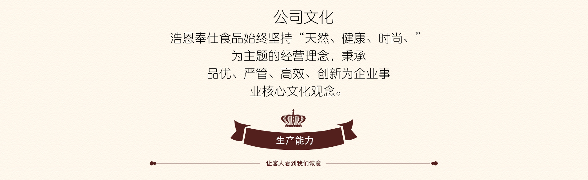 廣州浩恩奉仕食品有限公司坐落于廣州市從化區(qū)溫泉鎮(zhèn),擁有5萬平米的現(xiàn)代化水果加工工業(yè)園區(qū),配備全自動化生產(chǎn)線,專業(yè)的食品檢驗實驗室。是國內(nèi)大型專注于水果飲品研發(fā)、加工制造、營銷推廣的企業(yè)。我們始終秉承著“讓廣大消費者喝到清新自然的健康優(yōu)質(zhì)果飲”的宗旨,依托從化地區(qū)獨有的自然環(huán)境、鮮果資源,匠心獨運的研發(fā)生產(chǎn)出有機、綠色、健康飲品,并通過專業(yè)的營銷手段將真正好果飲送到每一位消費者手中。浩恩奉仕團隊專注、專業(yè),通過“創(chuàng)新、誠信、共享、競爭”的企業(yè)價值觀凝聚了一批熱愛果飲行業(yè),認(rèn)同公司理念,有無比事業(yè)熱忱的人才,致力于打造百年企業(yè)百年品牌,讓中國品牌、中國制造走出國門,閃耀世界!歡迎各界朋友蒞臨參觀、指導(dǎo)和業(yè)務(wù)洽談。