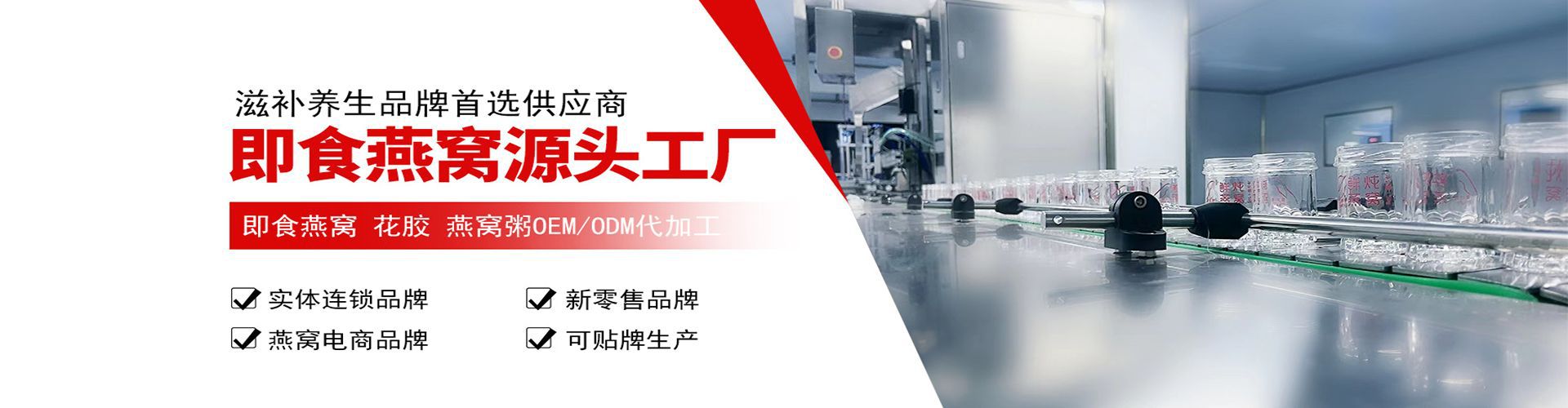 中印生物科技有限公司注冊資金1000萬美金,主營業(yè)務(wù):貨物進(jìn)出口,燕窩生產(chǎn)加工、生物科技研發(fā)生產(chǎn)等。車間建立三條全自動燕窩生產(chǎn)線,生產(chǎn)能力涵蓋各種瓶型和各種不同工藝的燕窩加工,日產(chǎn)量1萬瓶以上。公司秉承 ‘安全是基石,質(zhì)量是企業(yè)的生命線’ 的宗旨。公司建立十萬級GMP無菌車間,堅(jiān)持以制藥的標(biāo)準(zhǔn)做燕窩的原則,為客戶提供品質(zhì)可靠、營養(yǎng)美味的燕窩產(chǎn)品。