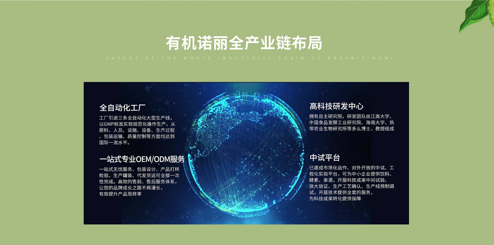 海南西沙諾麗生物有限公司由海南陸僑集團(tuán)注資成立,是專門從事諾麗有機(jī)種植、研發(fā)、有機(jī)加工的高新技術(shù)型企業(yè)。企業(yè)在海南熱帶地區(qū),自有多處有機(jī)種植示范基地,從選種、育苗、栽種、生產(chǎn)到品牌營銷全產(chǎn)業(yè)鏈布局。擁有生物技術(shù)研究院、專業(yè)營養(yǎng)師團(tuán)隊(duì)以及中國、美國、日本、歐盟四國有機(jī)認(rèn)證,企業(yè)多年來致力于健康營養(yǎng)產(chǎn)品的開發(fā)。海南西沙諾麗生物科技有限公司的誠信、實(shí)力和產(chǎn)品質(zhì)量獲得業(yè)界的認(rèn)可。歡迎各界朋友蒞臨參觀、指導(dǎo)和業(yè)務(wù)洽談。