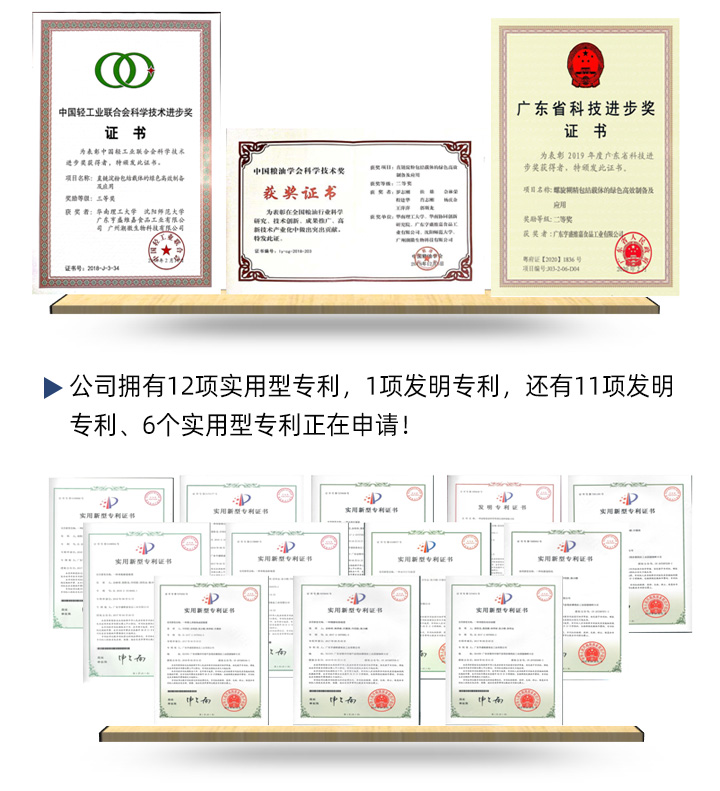 我司非常注重科學(xué)技術(shù)的創(chuàng)新,與華南理工大學(xué)、江南大學(xué)、汕頭大學(xué)等建立了良好的產(chǎn)學(xué)研合作關(guān)系。2018年參與的省、市政府部門的科技項(xiàng)目共3項(xiàng),企業(yè)自選的科技項(xiàng)目2項(xiàng),其中與華南理工大學(xué)合作的項(xiàng)目《直鏈淀粉包結(jié)載體的綠色高效制備及應(yīng)用》獲得中國(guó)糧食學(xué)會(huì)科學(xué)技術(shù)獎(jiǎng)二等獎(jiǎng);中國(guó)輕工業(yè)聯(lián)合會(huì)科學(xué)技術(shù)進(jìn)步獎(jiǎng)三等獎(jiǎng);2019年參與的省、市政府部門的科技項(xiàng)目2項(xiàng),自選的科技項(xiàng)目1項(xiàng)。