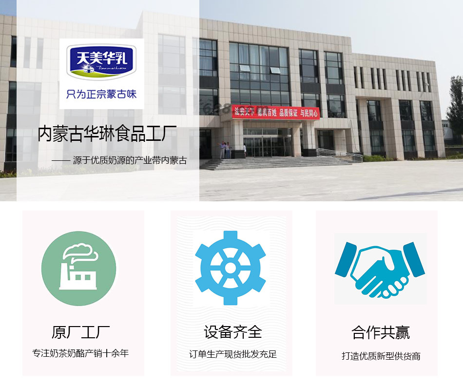 公司組織機(jī)構(gòu)健全,設(shè)有企業(yè)管理部、生產(chǎn)系統(tǒng)、營銷系統(tǒng)、財務(wù)系統(tǒng)、采供系統(tǒng),經(jīng)過短短幾年的發(fā)展,公司在科研、生產(chǎn)、銷售形成科學(xué)合理的產(chǎn)業(yè)鏈條,規(guī)模效益日益顯現(xiàn)。內(nèi)蒙古華琳食品有限責(zé)任公司擁有的品牌“天美華乳”是自治區(qū)著名商標(biāo),公司依托內(nèi)蒙古大草原純天然奶源優(yōu)勢,傳承草原牧人幾百年釀造工藝,引進(jìn)國內(nèi)外先進(jìn)設(shè)備、生產(chǎn)技術(shù)和管理模式,將傳統(tǒng)配方與現(xiàn)代技藝相結(jié)合,生產(chǎn)的產(chǎn)品主要有額頡奶茶、含乳制固態(tài)成型制品。