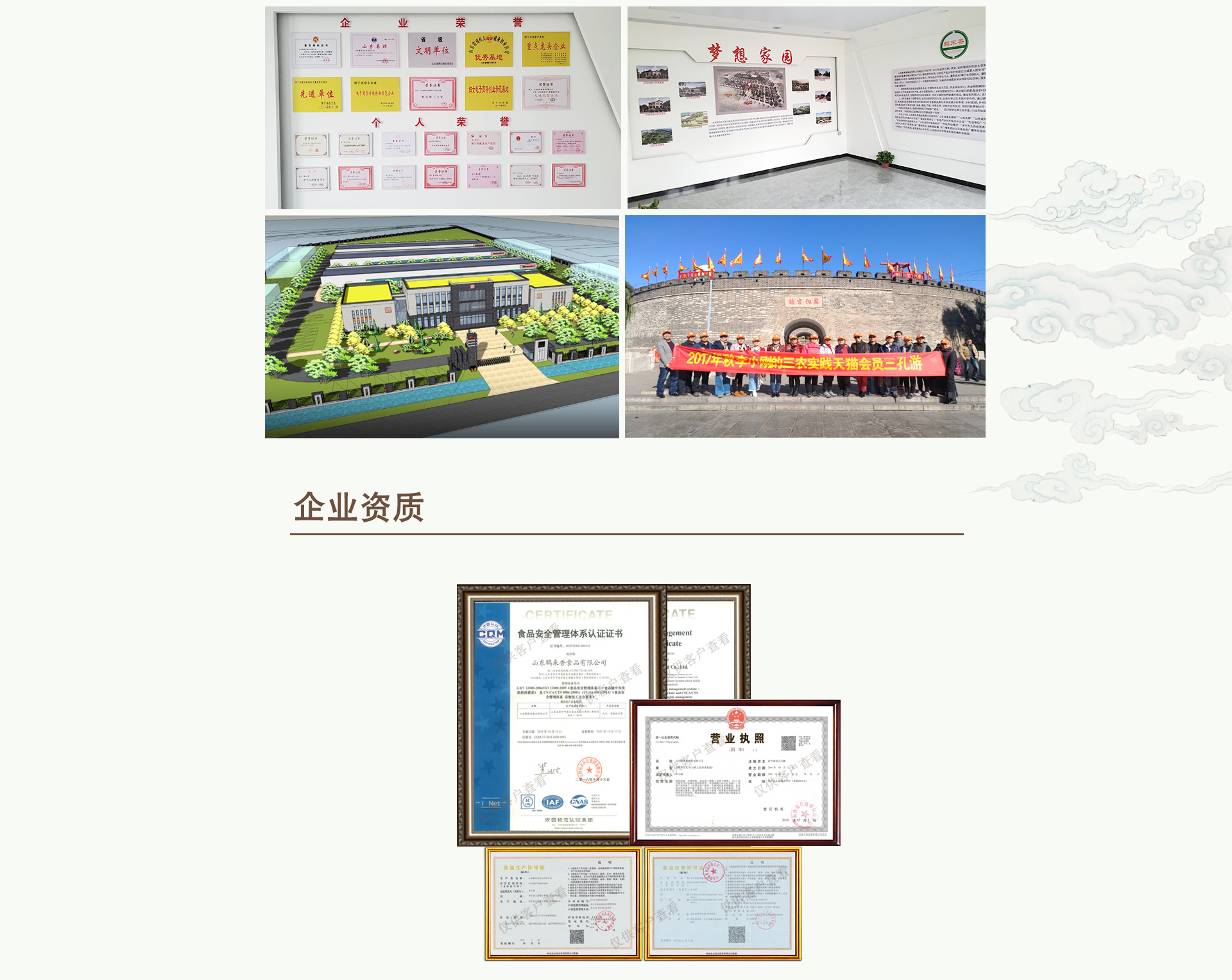 山東鶴來香食品有限公司成立于2001年,主營代用茶、代餐粉、豆?jié){包原料、雜糧面粉、低溫烘焙五谷雜糧,公司以:“發(fā)展綠色農(nóng)業(yè),給社會提供綠色健康價格合理的農(nóng)產(chǎn)品;推動農(nóng)村經(jīng)濟,讓農(nóng)民不走出農(nóng)村也能過上城里人的生活”作為企業(yè)新的發(fā)展理念。目前企業(yè)年銷售額3000余萬,提供就業(yè)崗位60余人,其中返鄉(xiāng)大學(xué)生12人,兼職在校博士生導(dǎo)師3人,兼職在校碩士8人,當?shù)貧埣踩?人,社會矯正人員2人。 通過近些年的發(fā)展,山東鶴來香食品有限公司被評為:“山東名牌”“山東省著名商標”“省級文明單位”“山東省文明誠信民營企業(yè)”“山東省殘疾人就業(yè)創(chuàng)業(yè)優(yōu)秀基地”“山東省新型職業(yè)農(nóng)民鄉(xiāng)村振興示范站”“農(nóng)業(yè)產(chǎn)業(yè)化市級龍頭企業(yè)”“濟寧市先進民營企業(yè)”等榮譽。李小剛被評為“全國農(nóng)村青年致富帶頭人”“山東省農(nóng)村電商標兵”“市級勞動模范”“濟寧市五四優(yōu)秀青年”“非公有制優(yōu)秀建設(shè)者”“濟寧市優(yōu)秀共產(chǎn)黨員”等榮譽。省廣播電視臺,省新聞