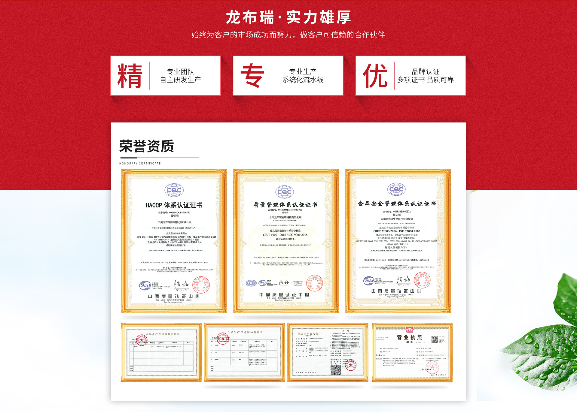 云南龍布瑞生物科技有限公司是蝦青素、雨生紅球藻、蝦青素油等、雨生紅球藻等產(chǎn)品專業(yè)生產(chǎn)加工的公司,擁有完整、科學(xué)的質(zhì)量管理體系。云南龍布瑞生物科技有限公司的誠信、實力和產(chǎn)品質(zhì)量獲得業(yè)界的認(rèn)可。歡迎各界朋友蒞臨參觀、指導(dǎo)和業(yè)務(wù)洽談。 云南龍布瑞生物科技有限公司是一家專門從事新資源食品研發(fā),生產(chǎn),銷售和植物有效成分萃取的高新技術(shù)企業(yè)。公司已通過ISO9001質(zhì)量管理體系認(rèn)證、ISO2200食品管理體系認(rèn)證和HACCP體系認(rèn)證。