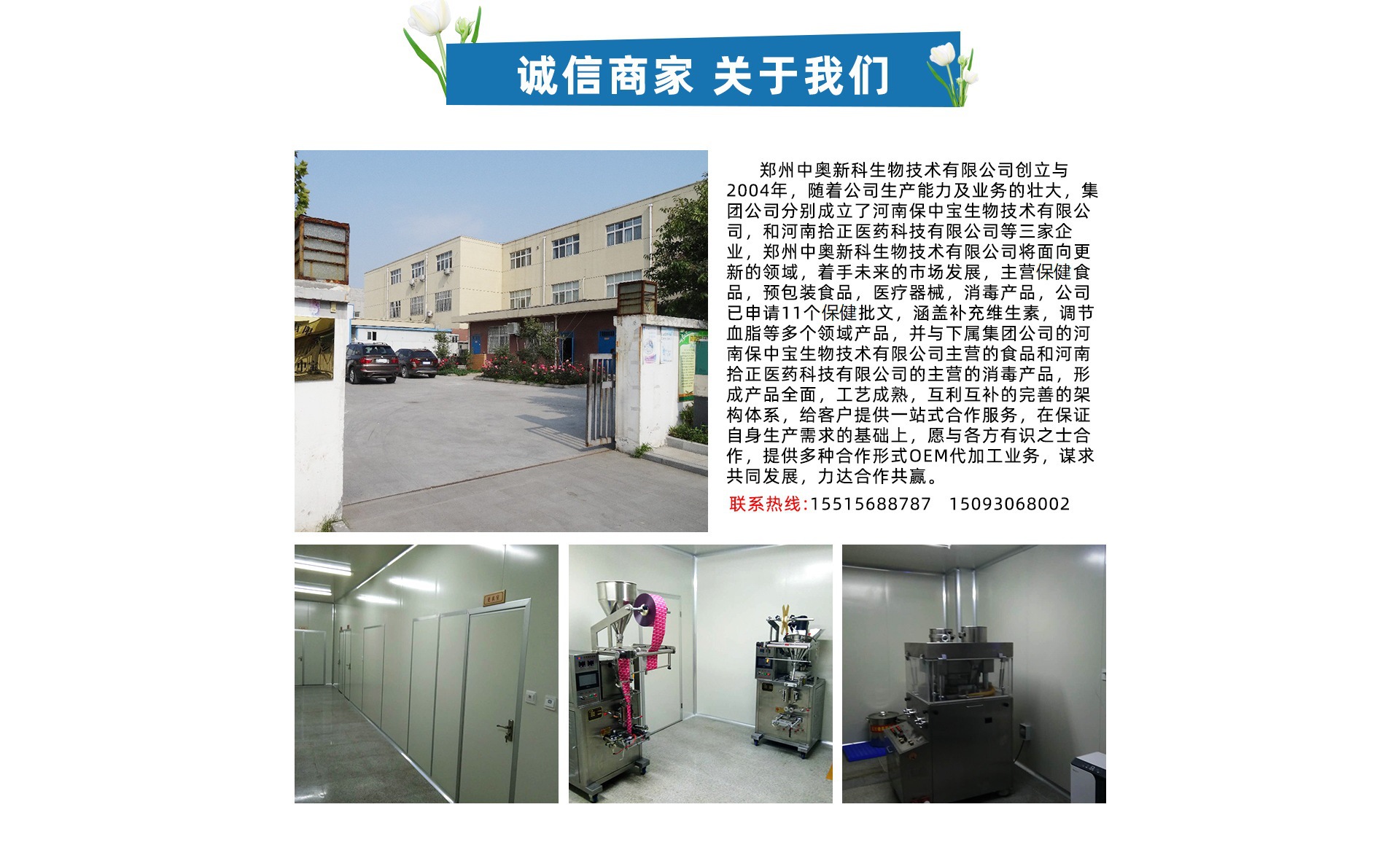 鄭州中奧新科生物技術(shù)有限公司創(chuàng)立與2016年,注冊資金1000萬元,位于全國交通樞紐的鄭州地區(qū)滎陽市,鄭州中奧新科生物技術(shù)有限公司面向保健食品領(lǐng)域,著手未來的市場發(fā)展,主營保健食品,預(yù)包裝食品,醫(yī)療器械,消毒抑菌產(chǎn)品,公司擁有先進(jìn)的生產(chǎn)設(shè)備,10萬級的凈化車間,擁有茶劑,膠囊劑,沖劑等生產(chǎn)許可劑型,現(xiàn)有減肥茶,通便茶,通便膠囊,通便沖劑等現(xiàn)有主打產(chǎn)品,公司正在申請11個保健食品批文,涵蓋補充維生素,減肥,通便,降血壓,調(diào)節(jié)血脂等多個功效領(lǐng)域產(chǎn)品,并與下屬集團(tuán)公司的河南保中寶生物技術(shù)有限公司主營的食品和河南拾正醫(yī)藥科技有限公司的主營的消毒抑菌產(chǎn)品,形成產(chǎn)品全面,工藝成熟,互利互補的完善的架構(gòu)體系,給客戶提供一站式合作服務(wù),在保證自身生產(chǎn)需求的基礎(chǔ)上,愿與各方有識之士合作,提供多種合作形式OEM代加工業(yè)務(wù),謀求共同發(fā)展,力達(dá)合作共贏。