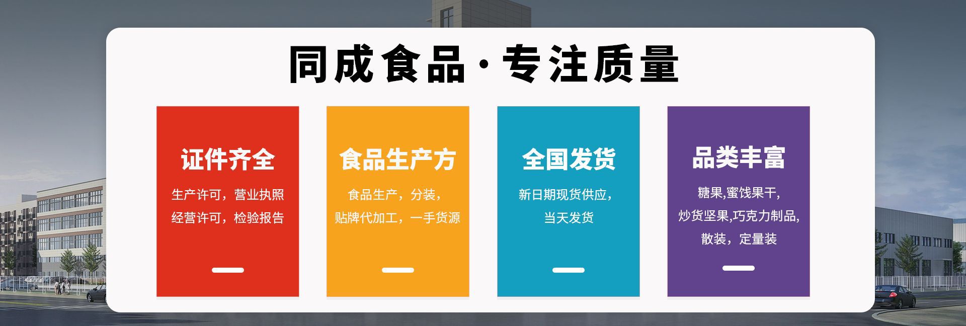 汕頭市同成食品有限公司是糖果、蜜餞、干果、堅果等產(chǎn)品專業(yè)生產(chǎn)加工的公司,擁有完整、科學(xué)的質(zhì)量管理體系。汕頭市同成食品有限公司的誠信、實力和產(chǎn)品質(zhì)量獲得業(yè)界的認可。歡迎各界朋友蒞臨參觀、指導(dǎo)和業(yè)務(wù)洽談。