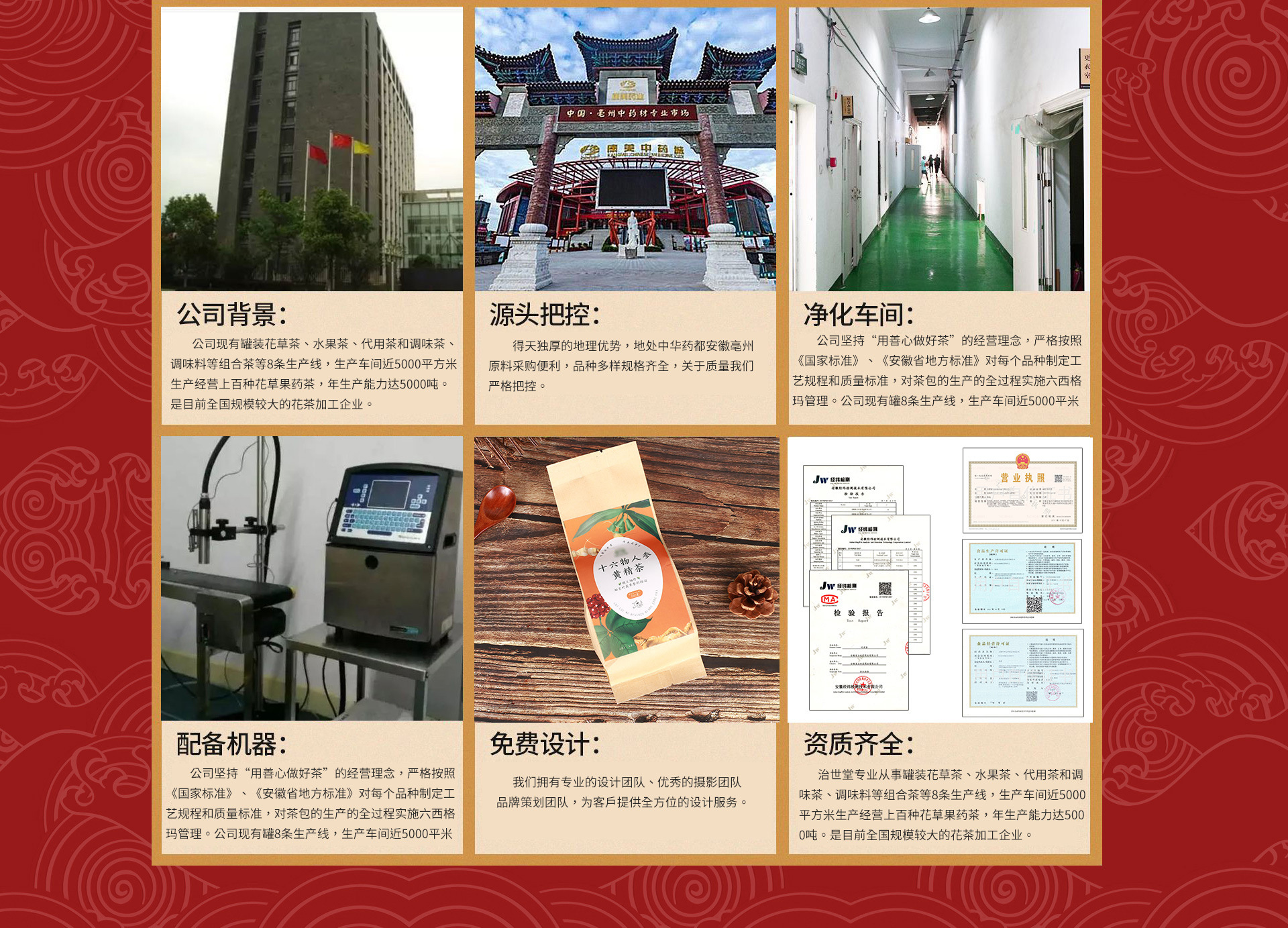 安徽省治世堂藥業(yè)有限公司坐落于中國最大的藥材集散地神醫(yī)華佗的故鄉(xiāng)和中醫(yī)藥文化的發(fā)祥地之一亳州,素有"中華藥都之稱"。本公司專業(yè)生產(chǎn)花草茶,水果茶,調(diào)味茶、固體飲料、方便食品的源頭廠家,專業(yè)代加工生產(chǎn)、OEM貼牌生產(chǎn)、一件代發(fā)、網(wǎng)紅直播帶貨、擺攤拿貨、支持微商,淘寶,京東,拼多多分銷、線下實體商超鋪貨以及批發(fā),零售。公司有有專業(yè)的產(chǎn)品研發(fā)團隊,擁有2000平方的專業(yè)廠房面積。長期員工人數(shù)達到150人左右。有配套的物流鏈,發(fā)貨方便。