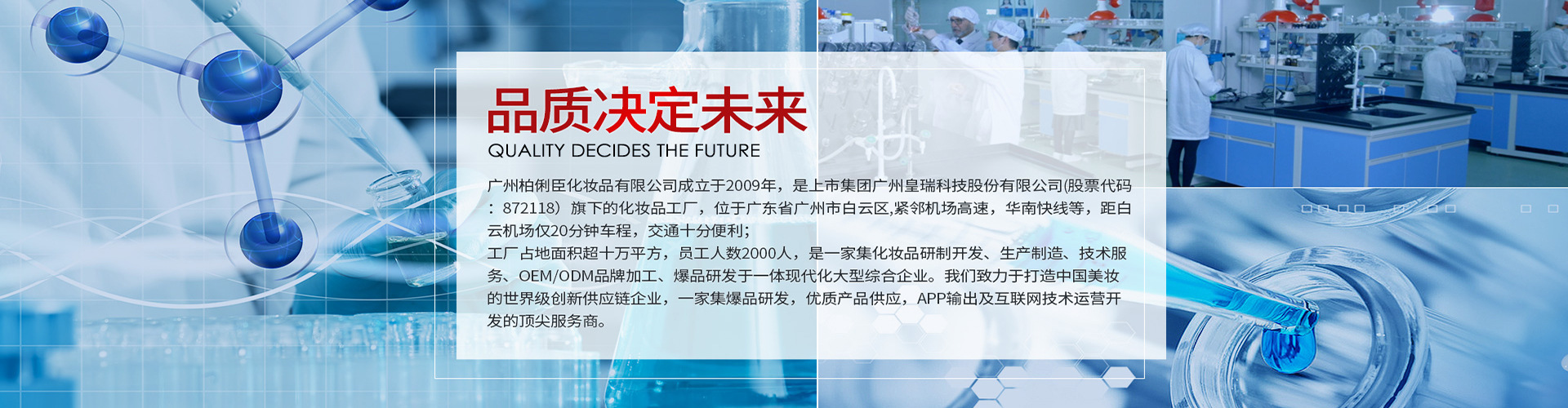 廣州柏俐臣化妝品有限公司是集化妝品研制開發(fā)、生產(chǎn)制造、市場銷售、技術(shù)服務(wù)、OEM/ODM品牌加工五位一體的現(xiàn)代化大型生產(chǎn)工廠,工廠占地面積20000多平方米,是一家高規(guī)格的,嚴(yán)格按GMPC標(biāo)準(zhǔn)建成的現(xiàn)代化化妝品制造企業(yè),擁有世界級的先進(jìn)生產(chǎn)工藝和標(biāo)準(zhǔn)檢測系統(tǒng)